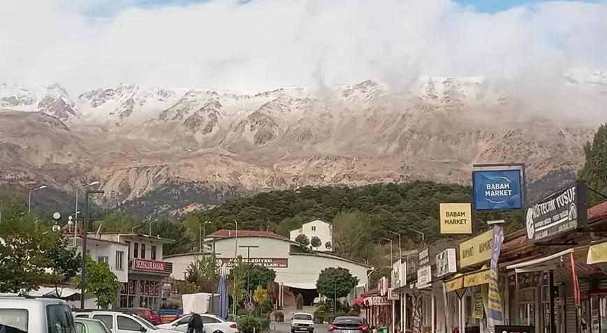 Antalya’nın Kaş ilçesine bağlı Gömbe Mahallesi’ndeki 2700 rakımlı Akdağ mevkisine gece saatlerinde kar yağdı. Dağın beyaza büründüğünü gören vatandaşlar, fotoğraf çekti.